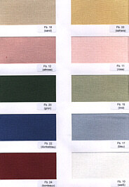 Farbgruppe 1: weiss, rosa, lindgrün, bleu, sand, altrosa Farbgruppe 2: bordeaux, waldgrün, blau