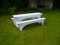 Bierbankhussen “Maastricht” und “Lüttich” halboffene Version, Stretchhussen für Biertischgarnituren