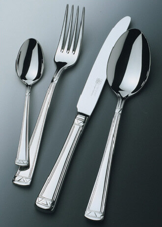 Menülöffel 208 mm Menügabel 202 mm Menümesser, Hohlheft 234 mm Menümesser, massiv 232 mm Steakmesser 226 mm Kaffeelöffel 141 mm Kuchengabel 152 mm Moccalöffel 115 mm Eislöffel 137 mm Dessertlöffel 183 mm Dessertgabel 180 mm Dessertmesser , Hohlheft 206 mm Dessertmesser, massiv 208 mm Fischgabel 180 mm Fischmesser 197 mm Gourmetlöffel 187 mm Butterstreicher 179 mm Fleisch-/ Aufschnittgabel 161 mm Gemüselöffel 207 mm Sahnelöffel 176 mm Salatbesteck (2-teilig) 207 mm