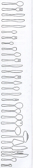 Saucenlöffel 180 mm Suppenschöpfer 280 mm Tortenheber 210 mm Tortenmesser 255 mm Tranchierbesteck 230/258 mm Zuckerlöffel 140 mm Zuckerstange 110 mm