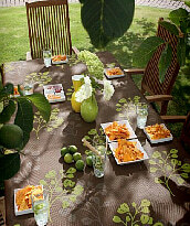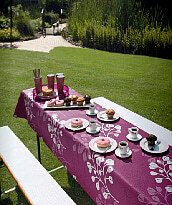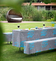 Feinstruktierte Gartentischwäsche wind- und wetterfest